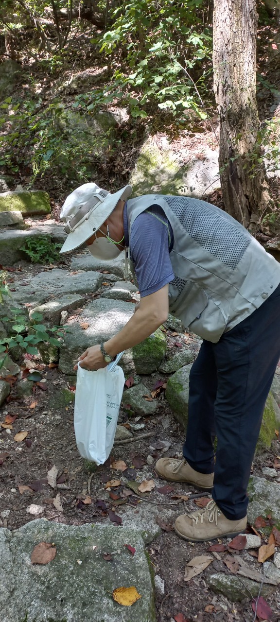 제목 : 환경정화(원도봉산) 봉사자 : 오경탁 일시 : 2021년 9월 18일(토요일) 9시30분~14시 내용 : 망월산 쓰레기 줍기 및 탐방로 안전 예방을 위해 작은 돌멩이, 떨어진 가지 치우기 등 소감 : 우리나라 고유 명절 추석을 앞두고 망월사 탐방로 쓰레기 줍기와 작은 돌멩이, 떨어진 가지를 밟고 넘어지지 않도록 치웠다. 작은 배려가 망월사 등산하는 분들에게 조금이라도 도움이 되길 바라면서~~~